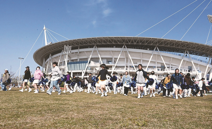 4月7日,“苏超”赛事演艺环节参演人员在连云港市体育中心足球场外开展全流程联排。大家打磨细节、全力备战,以最佳状态迎接赛事开幕。朱德富 摄 (视觉江苏网供图)
