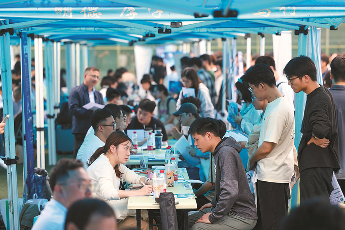 10月15日,南京工业大学举办2026届毕业研究生秋季专场招聘会。本次招聘会有近200家用人单位携岗位而来,就业岗位覆盖信息技术、生物医药、新能源、智能制造等多个重点产业领域。 本报记者 陈俨 摄