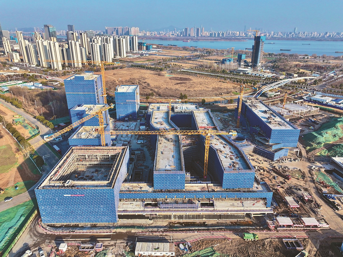 1月13日,南师附中江北新区学校高中部主体结构封顶。学校占地196亩,将于9月投用。 本报记者 范俊彦 摄(视觉江苏网供图)
