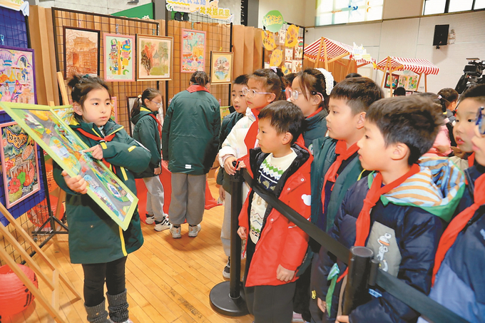 1月13日,南京市长江路小学举办主题为“艺美长江路,处处皆风景”儿童艺术作品展。学校鼓励孩子们关注校门口的长江路,发现和感受城市的美景,并用自己的双手进行艺术创作。活动收到300多幅绘画、书法和摄影作品,现场展示了百余幅作品。 实习生 涂画 本报记者 刘莉 摄