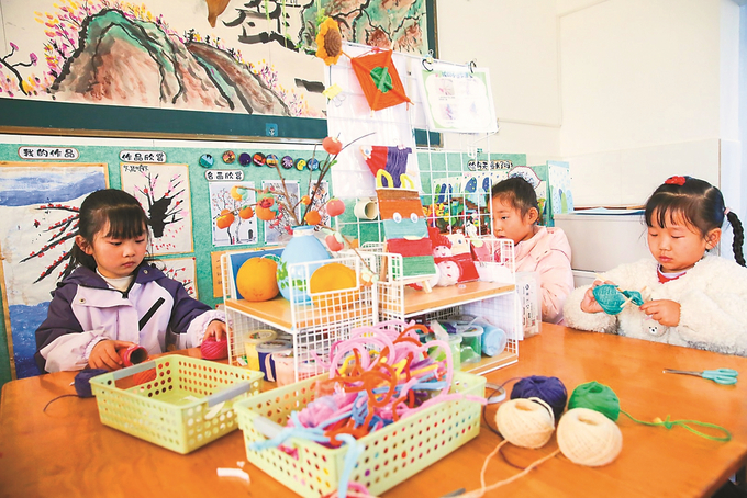 12月8日,如皋市白蒲幼儿园二分园小朋友们正在游戏区域里玩耍。该园利用低成本材料创设了丰富有趣的冬季游戏环境,让孩子们在活动中快乐成长。 徐慧 摄(视觉江苏网供图)