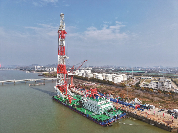 全球最大打桩船“铁建大桥桩1”号在南通正式交付。 本报记者 王诗宇 曹凯琪 摄