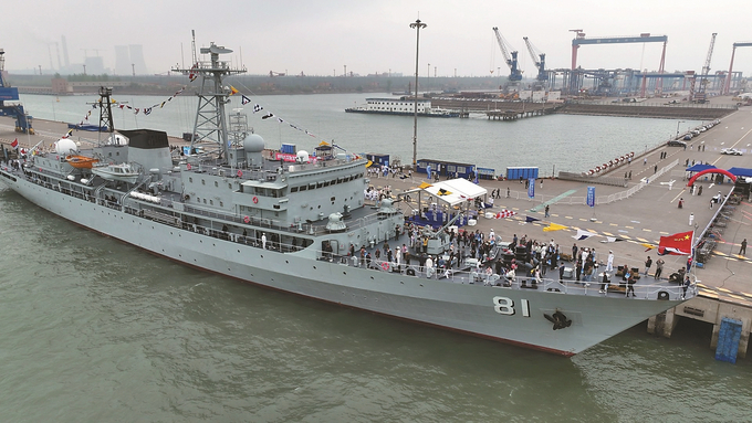 4月23日是人民海军成立76周年纪念日。22日,苏州太仓港润禾码头,市民登上海军远洋航海训练舰郑和舰参观,近距离感受“大国重器”的硬核魅力。 计海新 孟飞达 摄 (视觉江苏网供图)