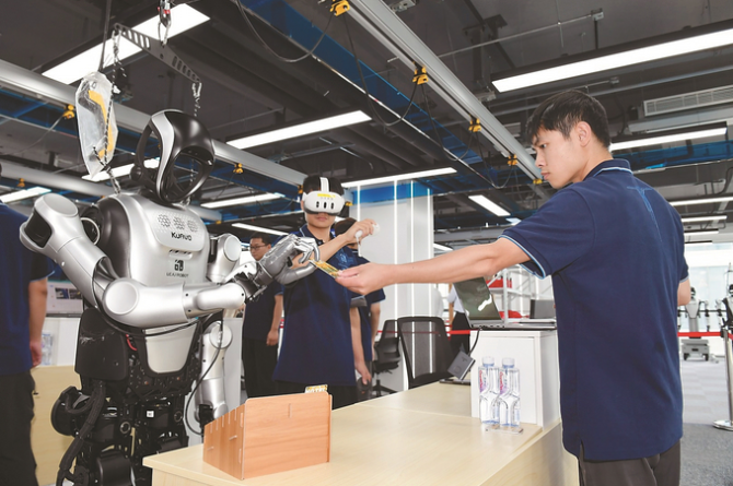 6月24日,长三角一体化示范区智能机器人训练中心正式启用。据介绍,该中心是江苏首个智能机器人训练中心,涵盖智能制造、商业服务和特种应用三大领域典型场景,致力于推动智能机器人技术突破和规模化商业应用,促进具身智能技术的创新与落地。 吴斌 摄 (视觉江苏网供图)