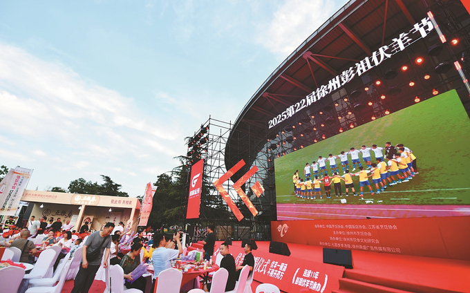 7月20日晚,江苏省城市足球联赛徐州队客场挑战常州队,众多球迷和食客专程来到徐州体育中心实况转播现场,为家乡球队加油、助威的同时享受“伏羊节”的地方特色美食。 安炳力 摄