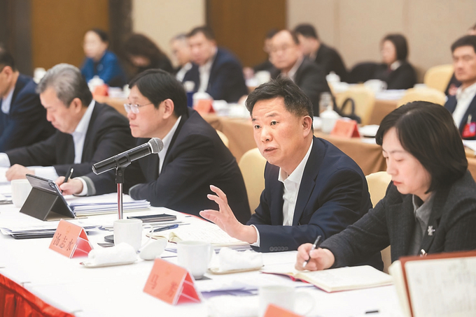 2月5日,出席省十四届人大五次会议的各代表团召开全体会议,审议省人大常委会工作报告、省高级人民法院工作报告和省人民检察院工作报告。图为徐州代表团审议报告。