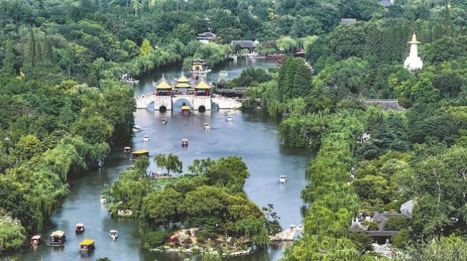 五月十九日是“中国旅游日”,扬州瘦西湖风景区当日免费对游客开放,吸引众多游客前来游玩,感受夏日湖上园林之美。 齐立广 摄 (视觉江苏网供图)