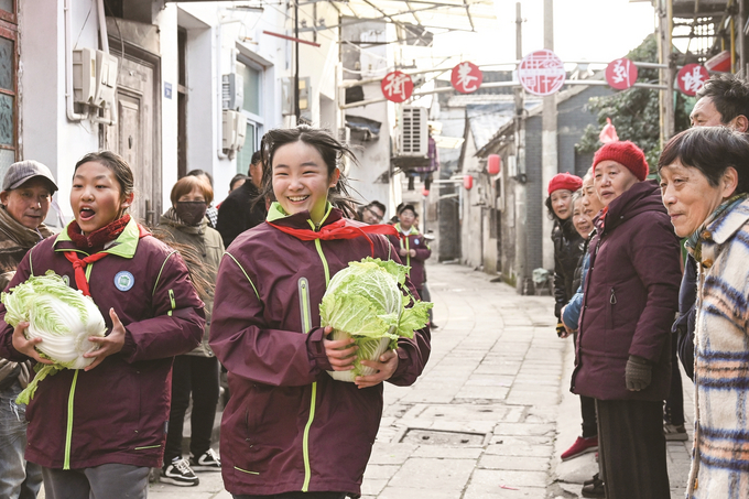 12月18日,镇江市委组织部机关党委、润州区金山街道银山门社区党委、穆源民族学校党支部共同开展“银山门社区第十八届街巷运动会”,党员志愿者、社区居民和学校的学生齐聚火星庙巷,通过“滚铁环”“拔河”“踢毽子”“大白菜接力赛”等多种趣味运动,在寒冷的冬日里享受运动带来的欢乐,丰富大家业余文体生活。 管奇璠 文雯 摄