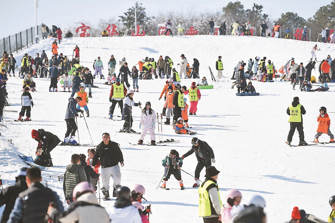 1月3日,位于句容宝华山国家森林公园内的宝华山滑雪场正式开业,开业首日上午场即接待游客近2000人次。该项目填补了周边大型户外专业滑雪场的市场空白,以“冰雪+旅游”模式,为宁镇扬都市圈市民的冬季休闲生活注入新活力。本报记者 邵丹 摄