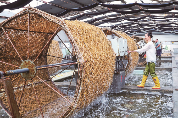 10月10日,工人在连云港市连云区板桥街道程圩紫菜工业园育苗场紫菜采苗机旁忙碌。金秋时节,连云港沿海全面进入条斑紫菜采苗阶段。养殖户抢抓有利时机采苗,准备尽快在“海上牧场”放苗。 王健民 张勇 摄