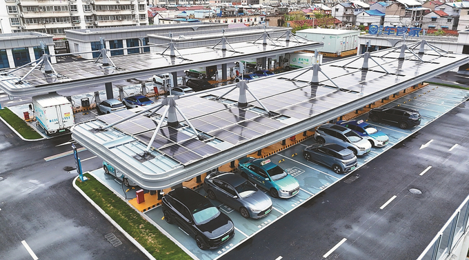 4月20日,新能源汽车正在连云港市海州区一处充电站充电。近年来,海州区统筹推进充电场站建设,初步建成“10分钟充电圈”,市民就近充电、便捷出行成为常态。 耿玉和 摄 (视觉江苏网供图)