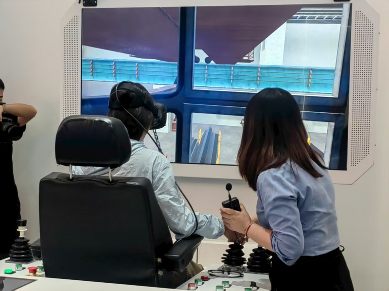 “数字化”在这里“随处可见”。在未来钢铁智造馆,游客通过空气成像触摸屏,即可自由选择查看生产全流程画面、运营数据和AI场景;戴上VR眼镜,乘坐云上天车培训仿真器,即可化身一名天车操作人员搬运钢材;还可以在AI拍照区域拍下一张照片,选择自己喜欢的风格,生成个性化“钢铁工人图”……