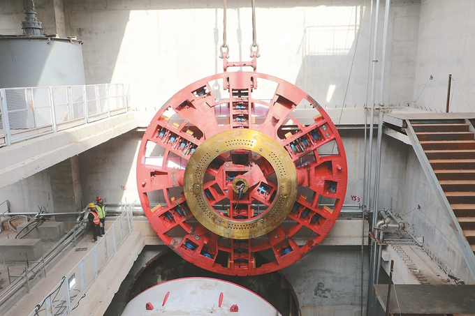 1月12日,在宁扬城际项目施工现场,巨大的“宁扬3号”盾构机刀盘被精准吊装进入始发井底,标志着该盾构机核心部件成功下井,为后续整机组装与始发奠定了坚实基础。目前,现场各项工作正按计划有序推进。 余祥 李双阳 摄(视觉江苏网供图)