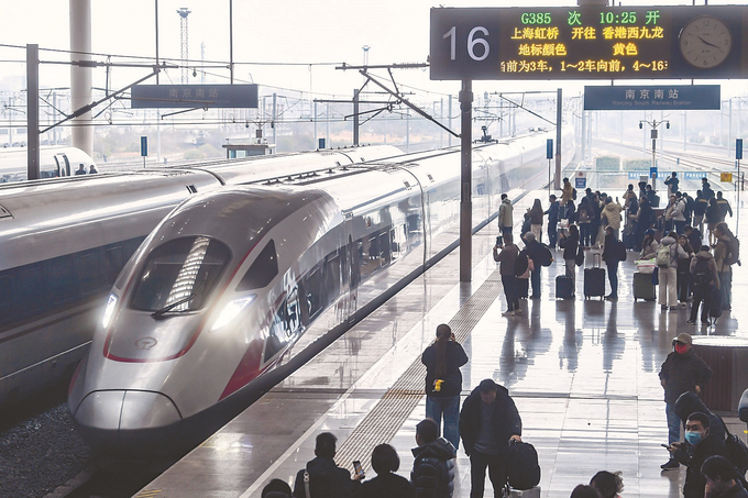 1月27日,南京南站首次开行直达香港西九龙站的高铁列车。该列车从上海虹桥站始发,途经京沪高铁、沪蓉铁路、京广高铁及广深港高铁,标志着南京首次实现高铁直达香港。通讯员 徐超 本报记者 邵丹 摄