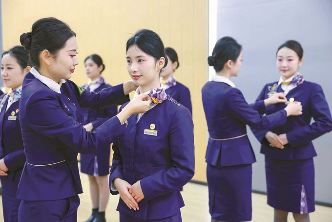 春运将至,铁路运输部门培训、检修忙。图为1月28日,“紫金号”G66次列车铁路南京客运段乘务班组正在进行系列培训。 陈俨 摄(视觉江苏网供图)