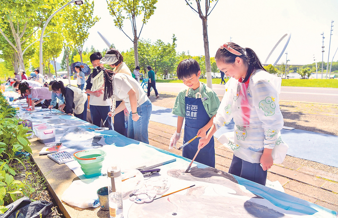 4月26日,在“2026少年城建说”启动仪式现场,260余名青少年在南京滨江规划建设展示中心执笔共绘百米画卷,以江豚嬉游、滨江如画为主题,用笔触勾勒人与自然和谐共生的美好图景。 通讯员 管冰 本报记者 范俊彦 摄