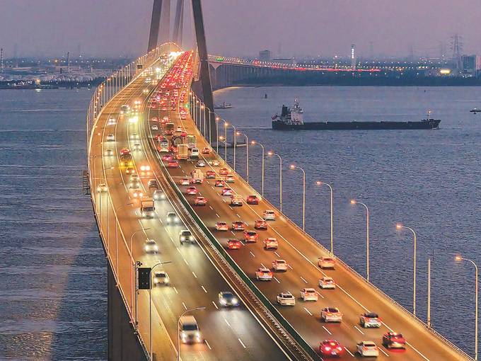 10月8日,南通苏通大桥迎来返程车流高峰。 许丛军 摄 (视觉江苏网供图)