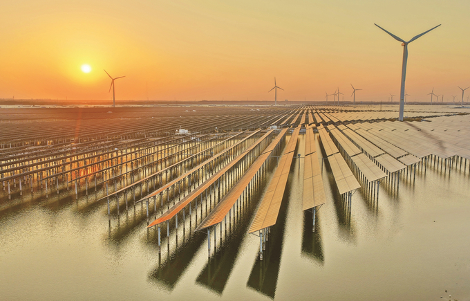 12月5日在南通市如东县拍摄的南通市最大单体渔光互补光伏项目如东凌洋农场渔光互补光伏发电项目一角。该项目是6760亩以渔光互补模式建设集中式光伏发电项目,将光伏电站与养殖业相结合,在鱼塘上建设光伏电站,形成“上可发电,下可养殖”的发电模式,有效节约土地,提高土地利用率。据介绍,如东县已建成光伏项目装机容量达236万千瓦以上,预计2025年光伏上网电量21.4亿千瓦时,相当于节约标准煤63.8万吨,减排二氧化碳256.8万吨。 许丛军 摄