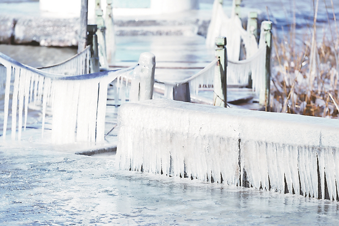 2月8日,宿迁市气温骤降,湖滨新区骆马湖湖边草木上挂满晶莹剔透的冰凌。 沈红荣 摄 (视觉江苏网供图)