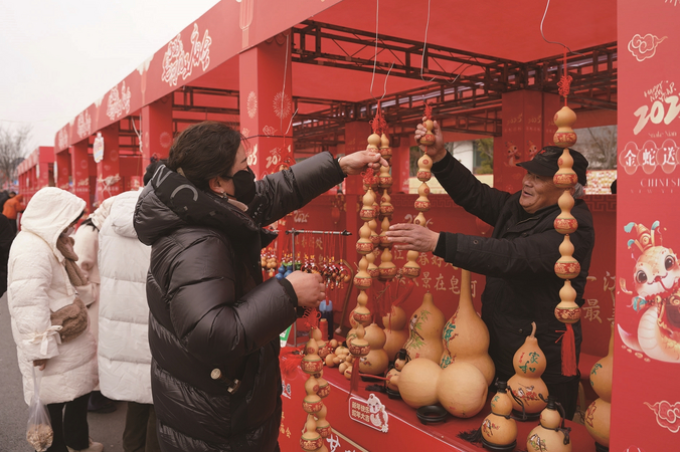 皂河非遗市集作为2025年皂河龙王庙会的核心亮点,是宿迁市湖滨新区皂河镇春节期间的重要民俗活动,具有深厚的文化底蕴。据悉,此次非遗市集以“非遗+民俗”为主线,精心策划了非遗展示、美食与购物、互动体验以及非遗演出四大板块。非遗展示区,葫芦雕刻、泥塑、石画、剪纸等传统技艺令人叫绝;美食与购物区,张家老鹅、鱼头饺子、糖画等特色美食别具风味,草编、布老虎等非遗产品琳琅满目。非遗演出尤为精彩,女子舞龙气势磅礴,曹甸高跷惊险刺激,苏北小调轻快活泼,快板表演诙谐幽默。夜幕降临,打铁花、火壶等传统技艺轮番上演,将市集氛围推向高潮。互动体验区,游客也可以亲手制作非遗产品,与非遗代表性传承人交流,共同传承与弘扬中华优秀传统文化。 王莉 郑峰 文/图