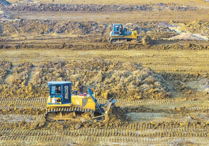 12月10日,泗洪县大楼街道黄吴社区高标准农田建设现场一派繁忙,村民正在对6000亩地块进行土地平整。该项目总规模1.8万亩,投资约4000万元,项目建成后将助力农户增收。 张连华 摄 (视觉江苏网供图)