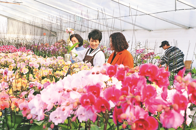 12月7日,苏州市吴中区临湖镇花卉种植基地,20万株蝴蝶兰色彩艳丽、长势喜人,预计元旦过后开始大批量上市,为春节年宵花市场增添喜庆氛围。 陈弋 摄 (视觉江苏网供图)