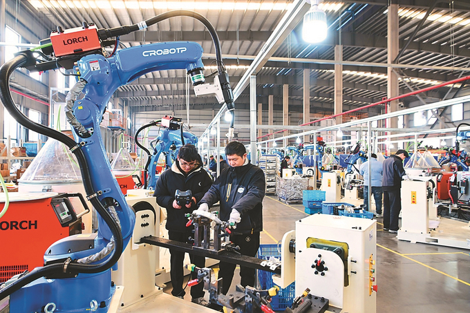 一月七日,太仓市华夏精密机械有限公司,工人正在生产流水线上加工两轮车车架。新年伊始,该公司开足马力,全力冲刺新年“开门红”。 计海新 摄 (视觉江苏网供图)