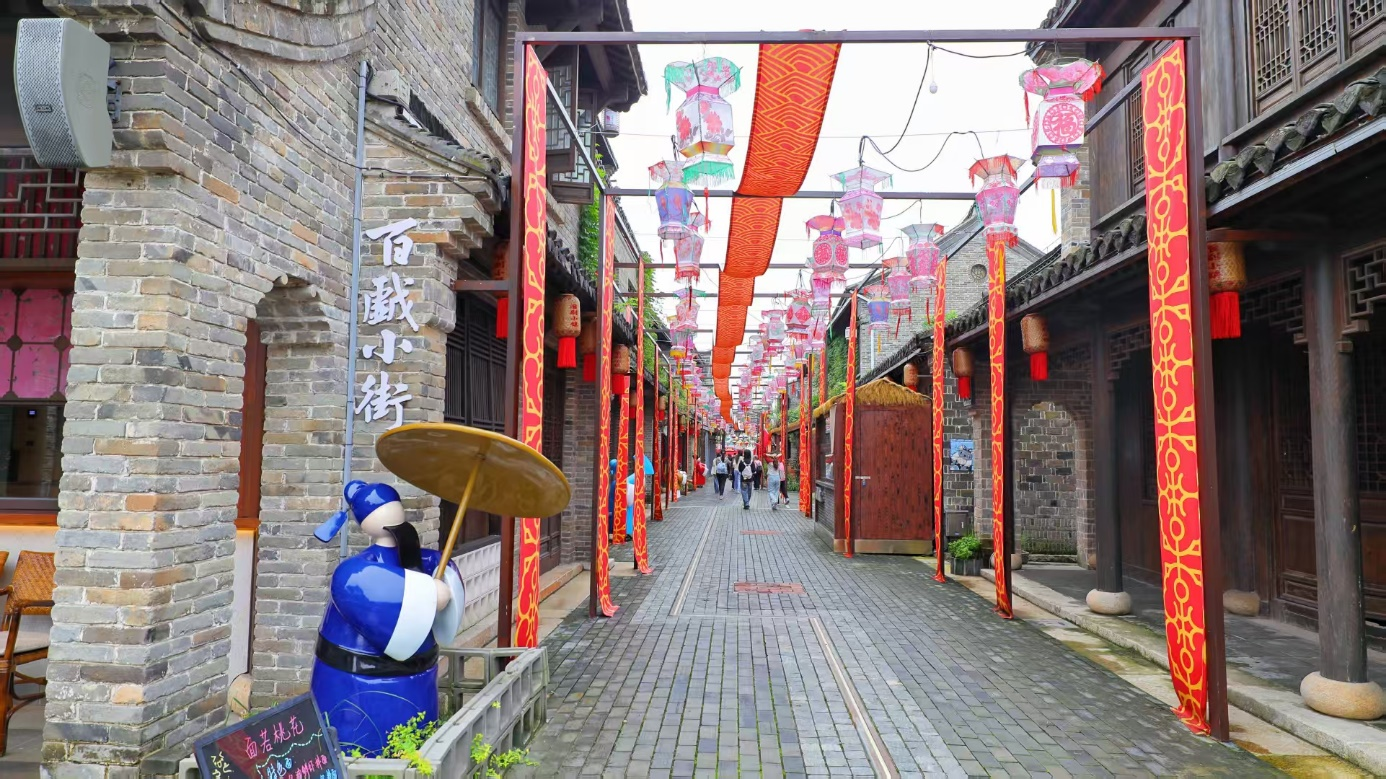 清晨的小镇,最先苏醒的是戏韵与烟火。淮剧传习所内,老艺人的唱腔穿过木格花窗,字正腔圆间满是岁月沉淀的韵味;隔壁的早点铺里,蒸笼升腾的热气裹着香气漫出,与戏声交织成最生动的晨曲。漫步其间,淮剧元素早已融入每一处细节:主题商业街的文创店里,Q版淮剧人物钥匙扣、戏服纹样书签被游客捧在手中;1953淮剧主题餐厅里,服务生身着改良戏服穿梭,墙面贴着经典剧剧照,菜单映着戏曲术语,连餐具边缘都缀着淮剧水袖纹样,让食客在品味美食时也能触摸戏曲文化。