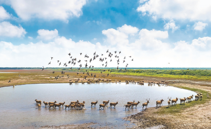 10月11日是世界候鸟日,在世界自然遗产中国黄(渤)海候鸟栖息地核心区——东台条子泥湿地,大批候鸟在湿地栖息、觅食,呈现人与自然和谐共生的生态美景。孙家录 摄 (视觉江苏网供图)