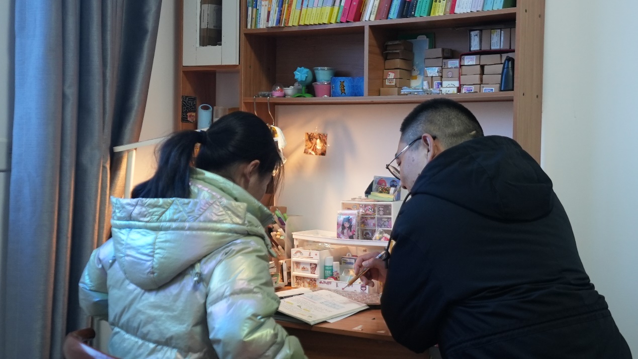 硬件跟上了,面对面的关心和交流也不能落下。从小学升入初中之后,性格内向的小琪一度学习成绩波动比较大。黄向前和担任“希望家长”的北新镇党委副书记陈辉定期轮流到小琪家中辅导功课、陪小琪聊学校里的各种大事小情,并长期与所在学校及班主任老师保持密切沟通,及时了解小琪的身心健康状况及学业情况。