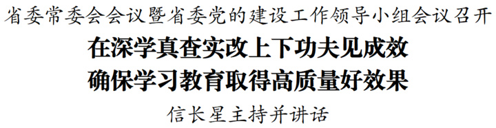 本报讯 (记者 黄伟) 2月28日,省委常委会会议暨省委党的建设工作领导小组会议召开,深入学习贯彻习近平总书记关于树立和践行正确政绩观学习教育的重要讲话和重要指示精神,全面落实中央党的建设工作领导小组会议和有关通知要求,审议我省学习教育《实施方案》,部署启动我省树立和践行正确政绩观学习教育工作。省委书记、省委党的建设工作领导小组组长信长星主持会议并讲话。