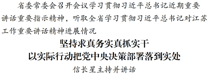 本报讯 (记者 黄伟) 2月28日,省委常委会召开会议,学习贯彻习近平总书记近期重要讲话重要指示精神,听取全省学习贯彻习近平总书记对江苏工作重要讲话精神进展情况,研究部署相关工作。省委书记信长星主持会议并讲话。